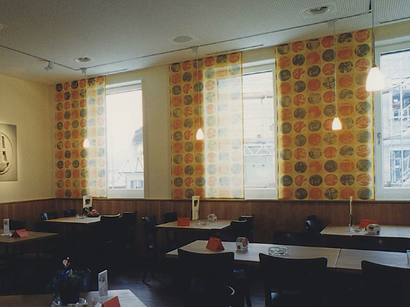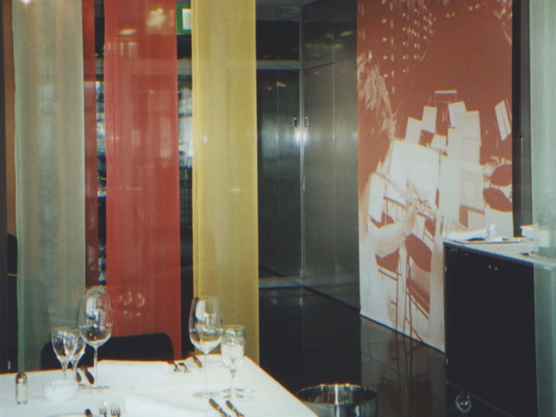 1998 Luzern, KKL Diverse textile Installationen zur Eröffnung: Restaurant 1. Stock, Presseräume, Musikzimmer